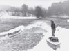W wyniku ponowienia inicjatywy przez kol. J. Korka, przy częściowym poparciu i z delegowania b. OKTKaj. doszło do zorganizowania pierwszego zimowego spływu kajakowego w Polsce. Odbył się on na rzece Brdzie w dniach 06-07.02.1965 (sobota-niedziela), na odcinku Mylof - rzeka Kamionka o długości 61 km. Chęć uczestnictwa w spływie zgłosiło 5 osób. Z powodu silnych mrozów (-15 do -20 C) i przesuwania terminu spływu część osób zrezygnowała. Ostatecznie płynęli tylko Jerzy Korek i Zdzisław Słowiński, obaj członkowie BKK PTTK. Płynęli oni na przedwojennym składaku typu "Pelikan" z saneczkami do transportu na rufie kajaka. Pierwszy nocleg był zaplanowany w leśniczówce Mylof - niedaleko zapory. Kajak i bagaż ciągnięto tam na saneczkach od stacji PKP w Rytlu, Był wieczór, mróz i głęboki śnieg. Dwóch pieszych z nietypowym jak na tą porę roku wyposażeniem budziło w leśniczówce ogólną sensację i zdziwienie. Drugi nocleg miał miejsce w nadleśnictwie Woziwoda. Trasa spływu w 1965 roku była wyjątkowo trudna technicznie i b. niebezpieczna. Odcinek Piła - rzeka Kamionka przepłynięto, łamiąc miejscami pokrywę lodową. Powrót do Bydgoszczy nastąpił autobusem PKS z Gostycyna. Zasadniczym celem spływu było rozpracowanie trasy i warunków do grupowego pływania zimą oraz zdobycie odpowiednich doświadczeń. Środowisko kajakarzy potraktowało ten spływ jako ryzykowny wyczyn sportowy, natomiast jego bezpośredni uczestnicy uważali, że spływy zimowe mogą być atrakcyjną imprezą turystyczną, jednak powinni brać w nich udział tylko b. doświadczeni kajakarze, a spływać winno się w niewielkich zespołach i obowiązkowo - z uwagi na krępujące ruchy ciężkie ubranie zimowe - w kamizelkach ratunkowych. | Fotografie ze spływu: